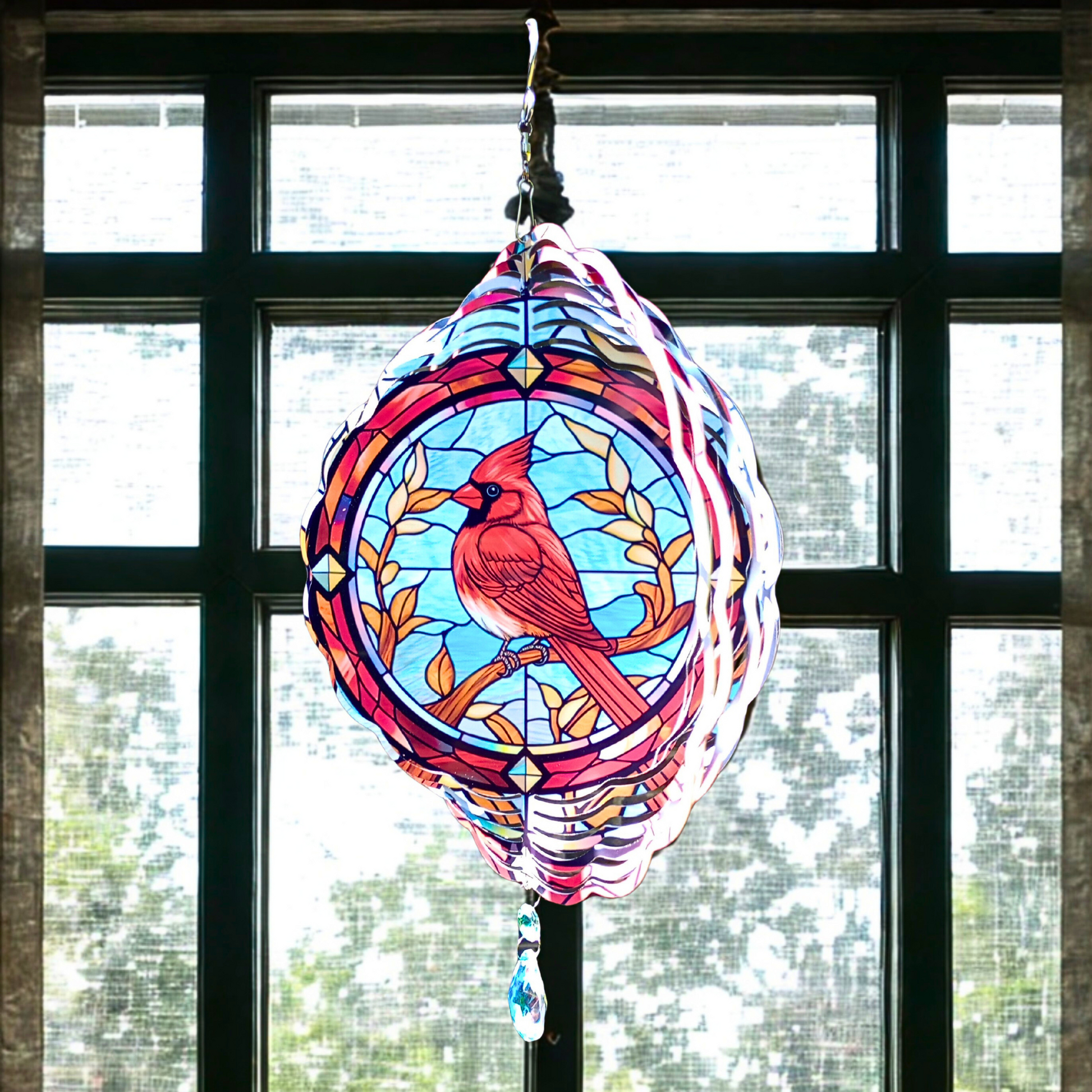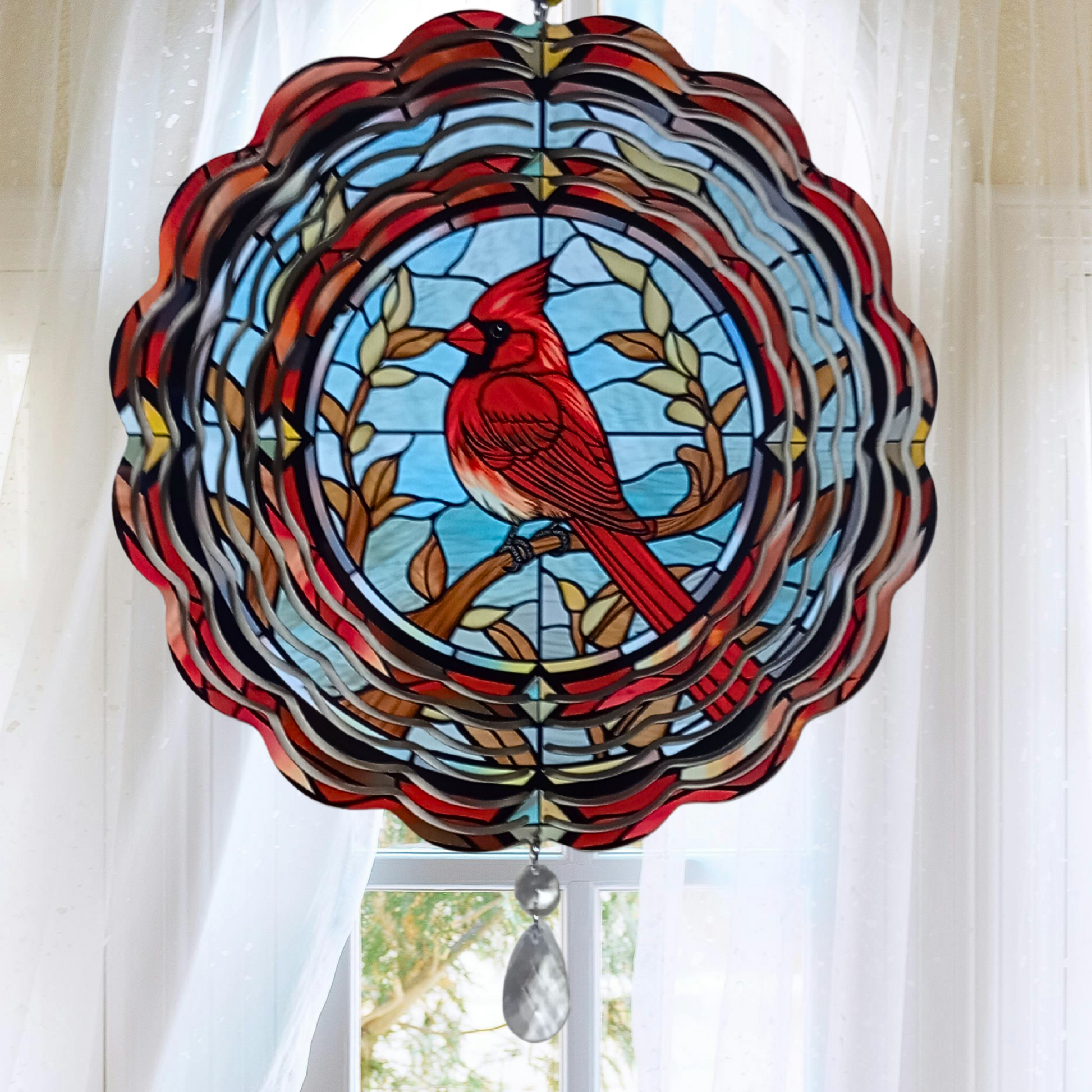 Cardinal with Red Border wind spinner