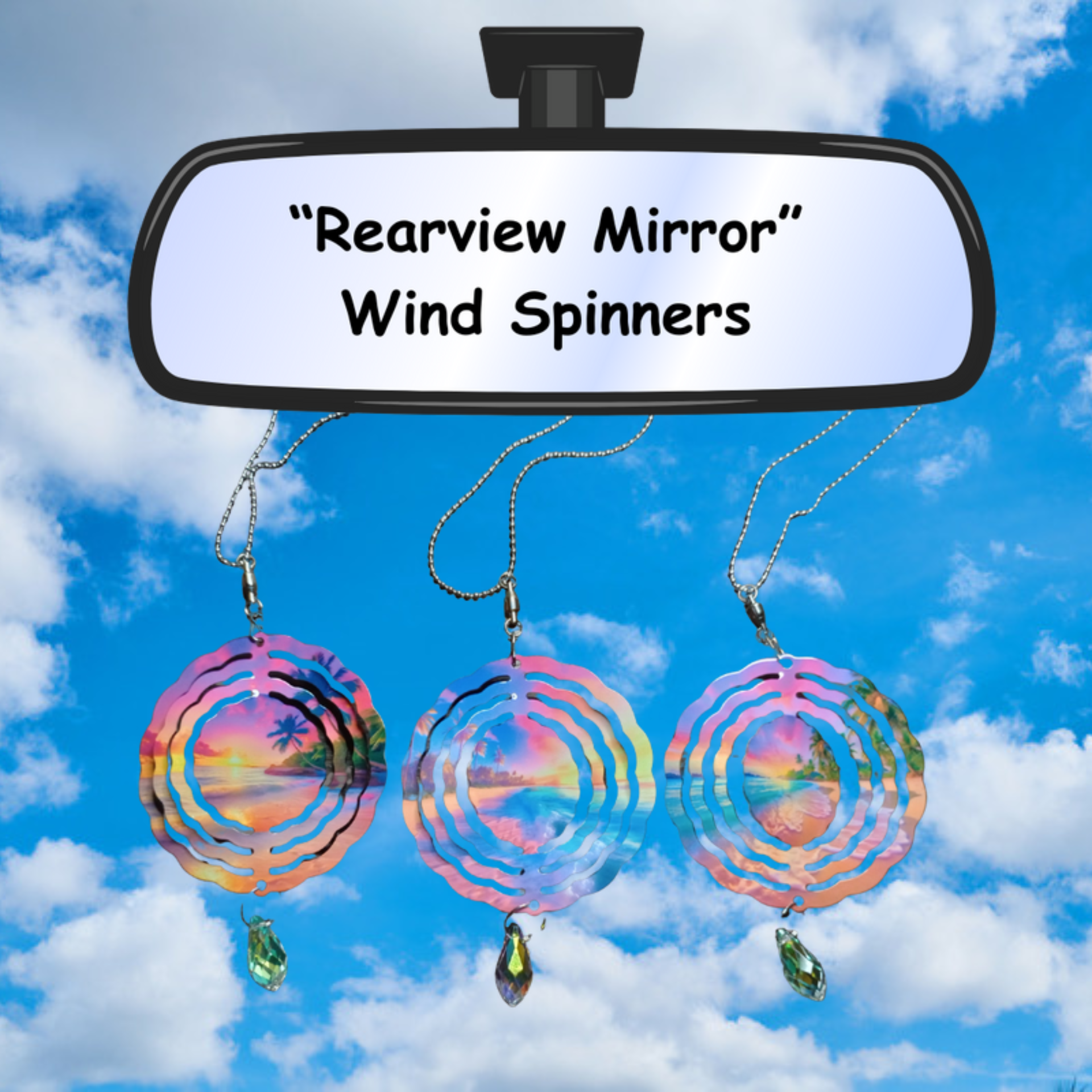 The 3-inch rearview mirror spinner hangs from a swivel connected to a 12-inch ball chain, featuring a charming glass bead that dangles gracefully from the bottom.