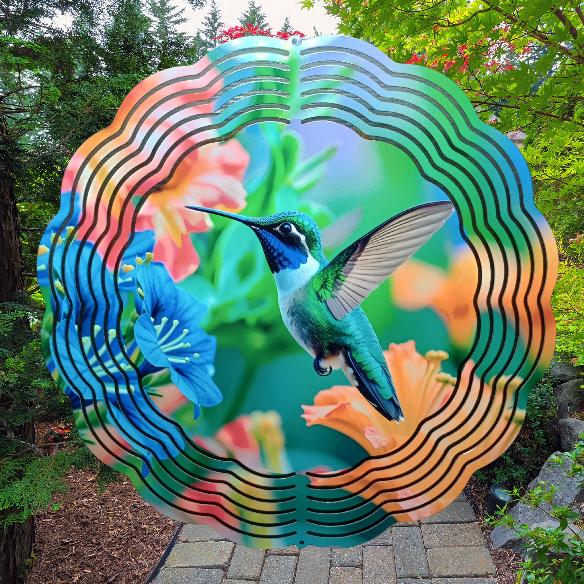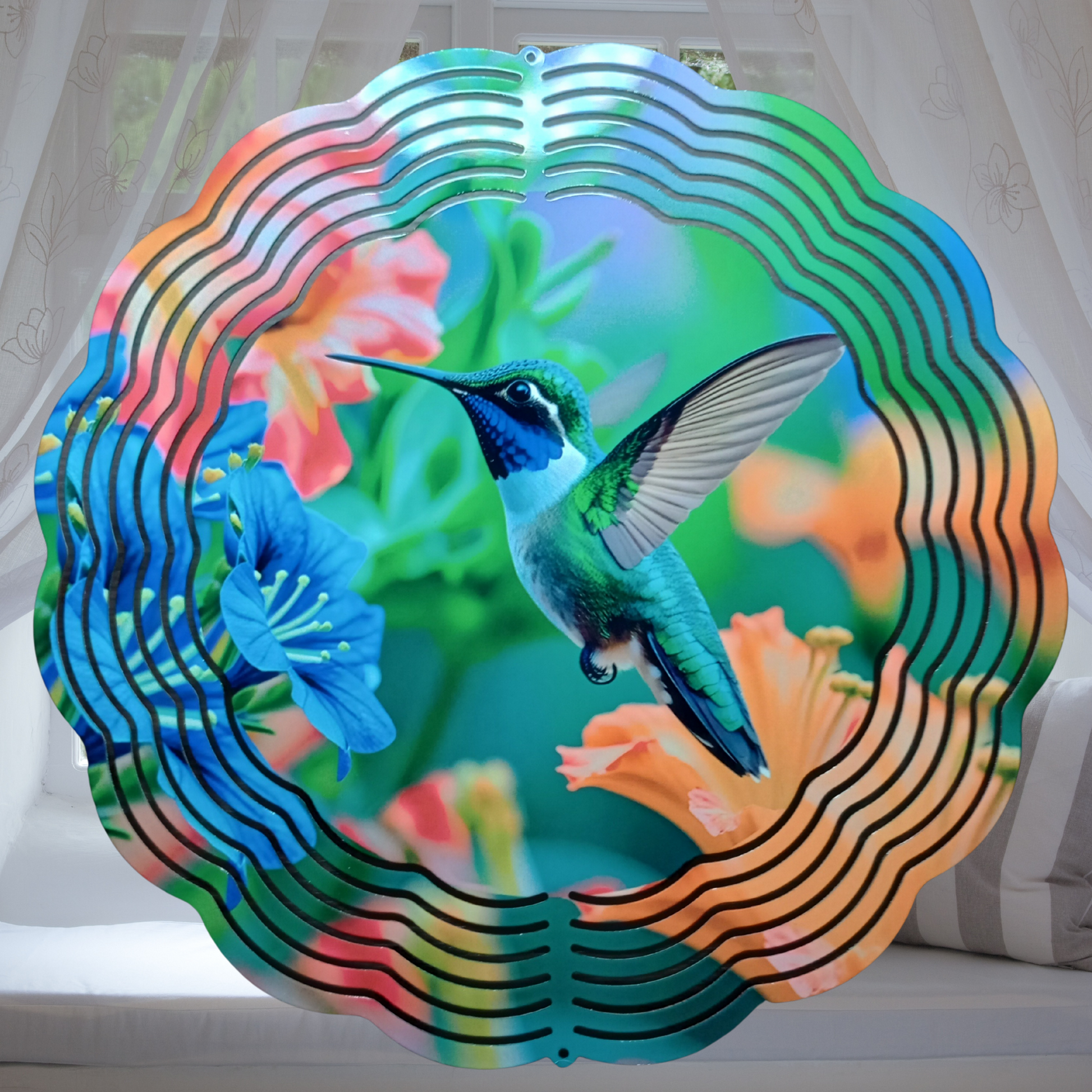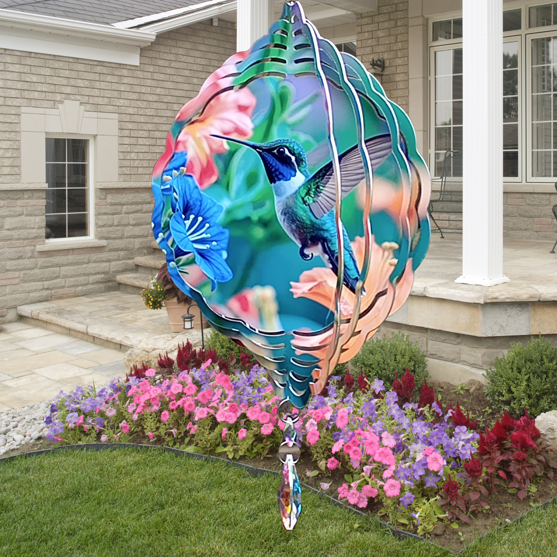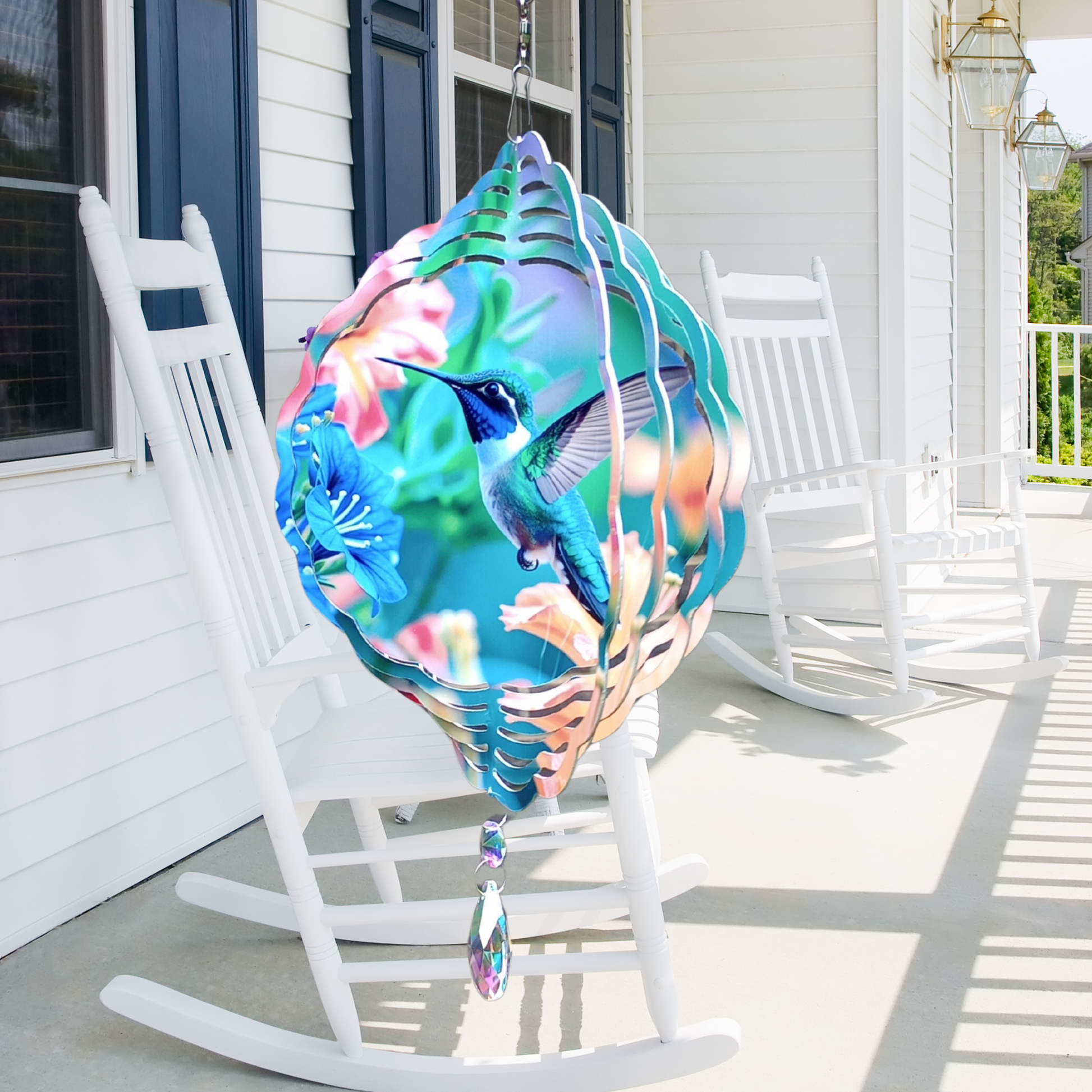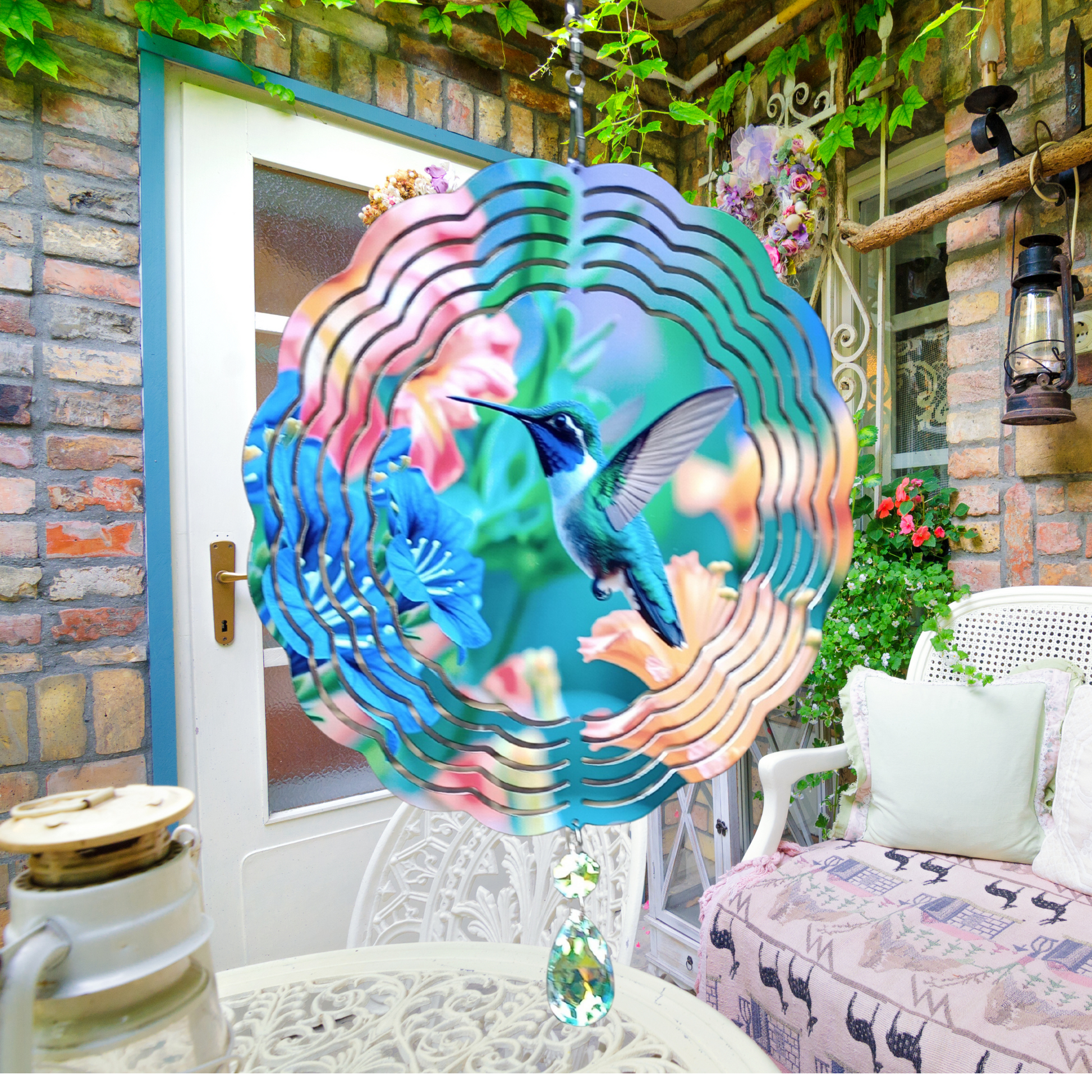 Capture the beauty of nature with this Hummingbird and Flowers wind spinner. Featuring a lifelike hummingbird in flight surrounded by vibrant flowers, it adds a touch of color and movement to any space. Ready to hang from a swivel hook, with an attached crystal suncatcher that catches the light beautifully. Perfect for brightening your garden, porch, or window, this charming spinner brings a lively, elegant accent wherever it’s displayed.