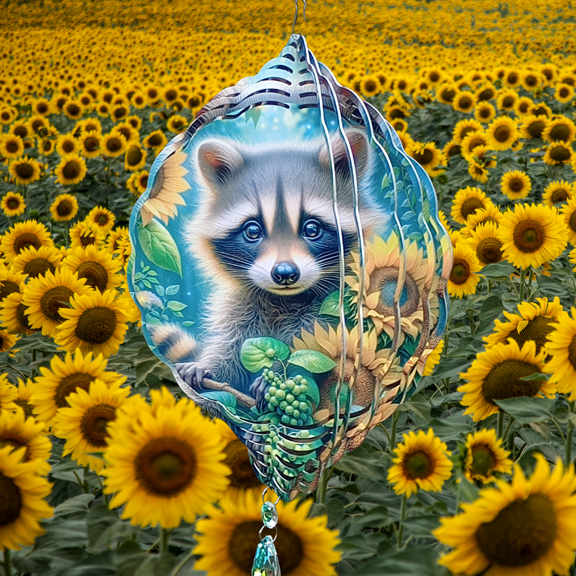 Racoon and Sunflowers wind spinner